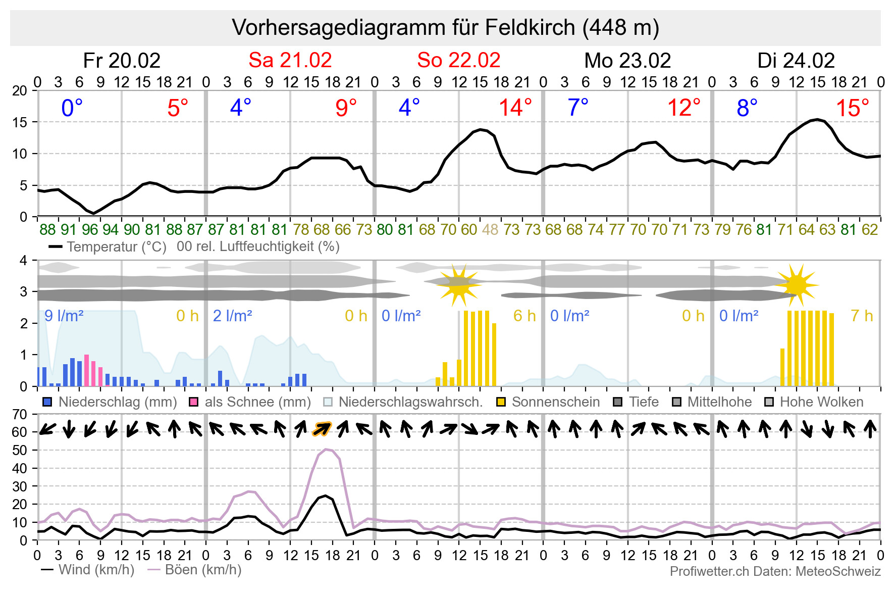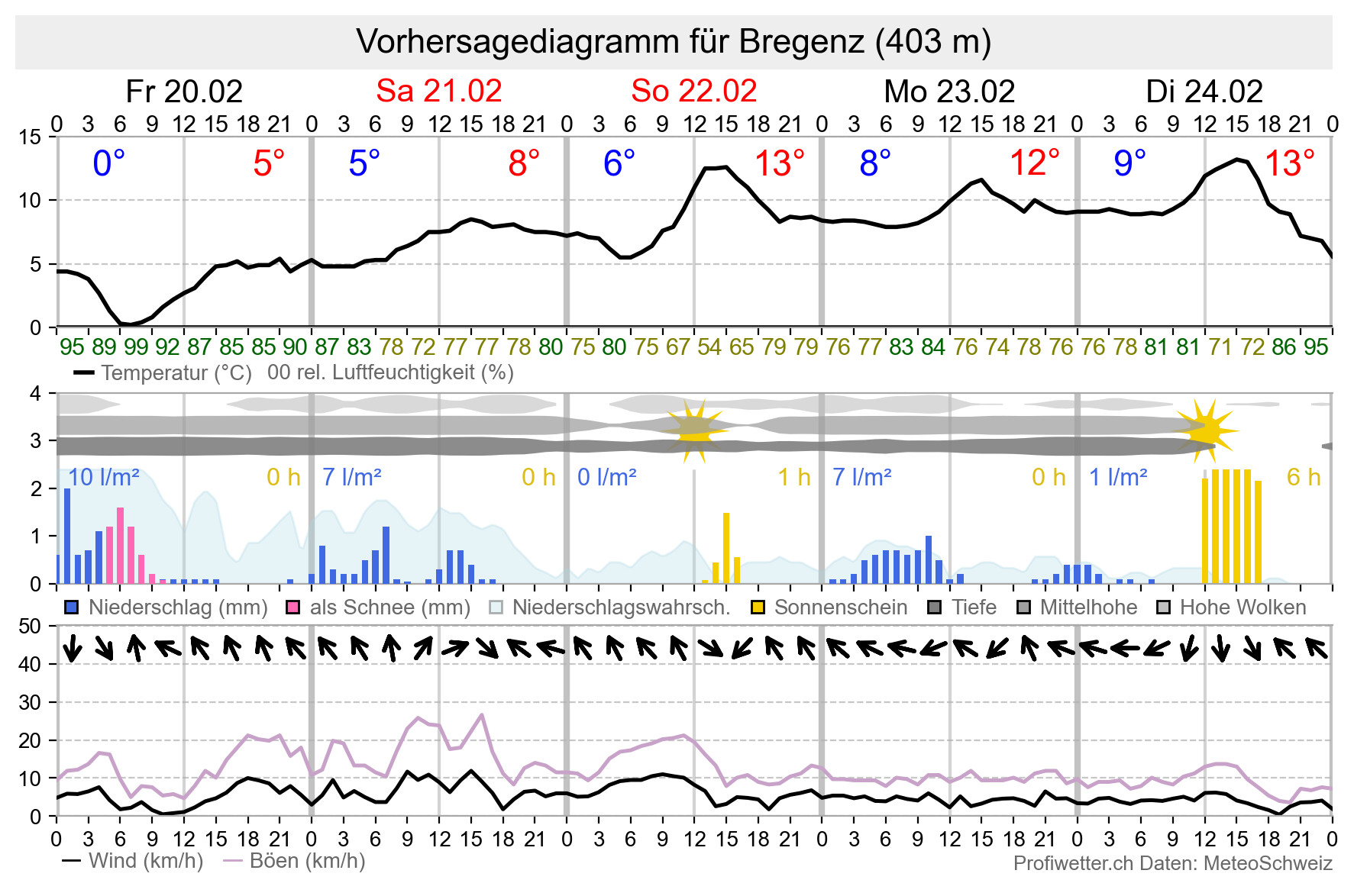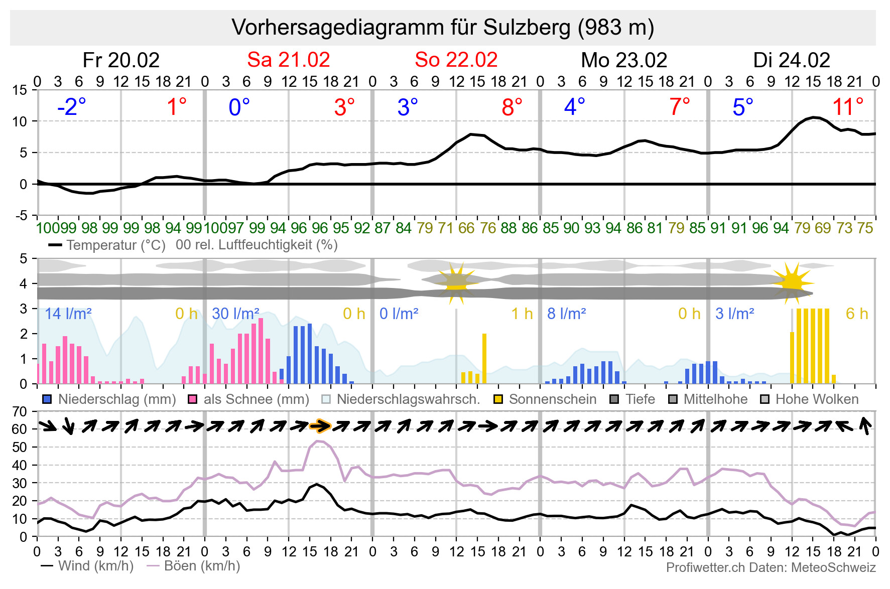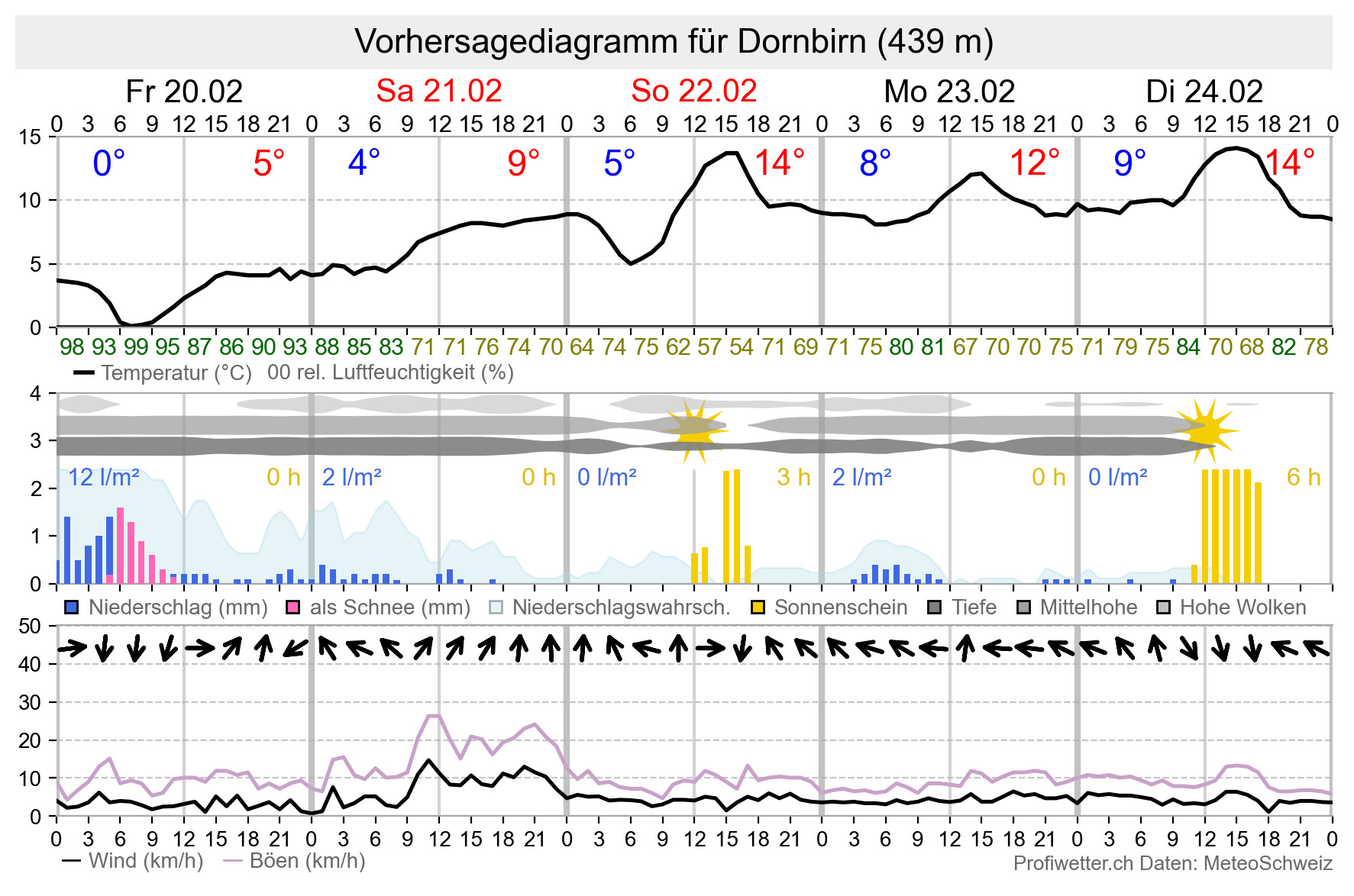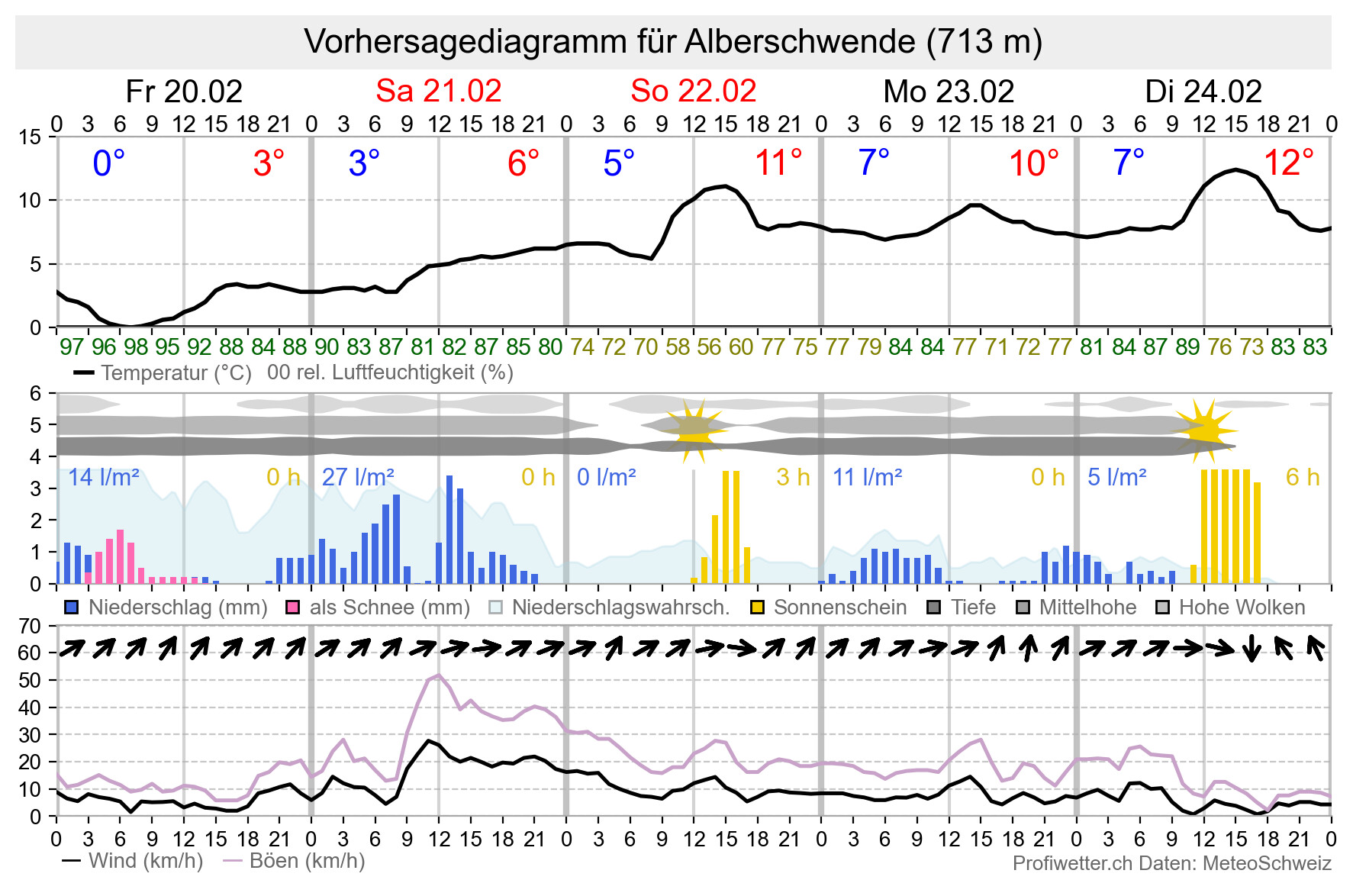 Niederschlag | Temperatur | Wind | Niederschlagssumme