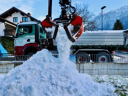 Die LKW-Schneeladung (10 Kubikmeter) kann nur innerhalb Vorarlbergs und an eine Familie mit Kind(ern) mit eigenem Garten zugestellt werden.