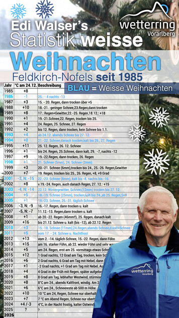 Seit 2011 gab es in Feldkirch keinen Heiligabend mit Schneebedeckung mehr. Somit haben dieses besondere Erlebnis nur Jugendliche älter als 18 Jahre aktiv in Erinnerung. Die Wetterkarten für ...