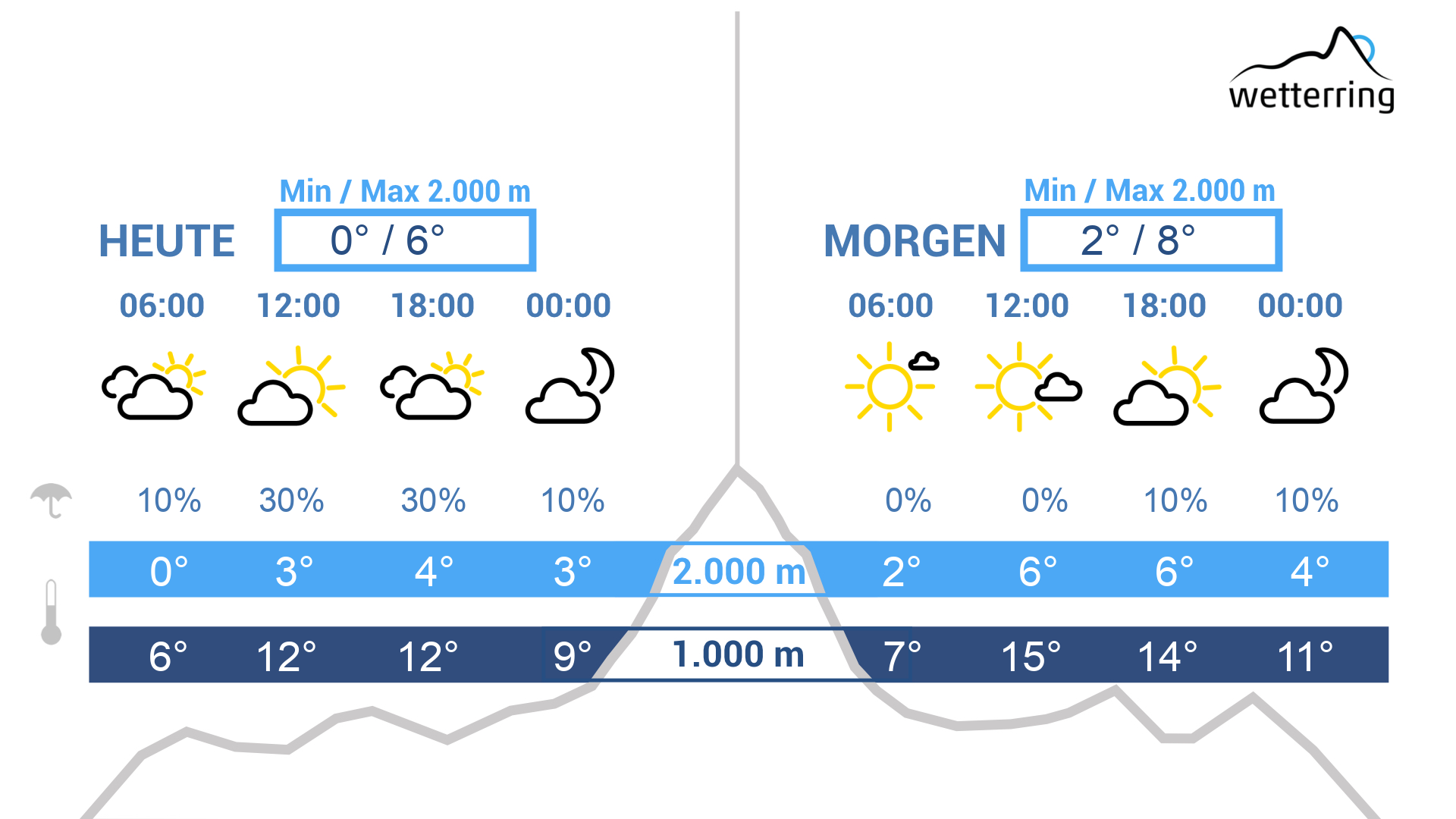 In der Früh halten sich noch dichtere Wolkenfelder. Tagsüber geht es mit einer freundlichen Mischung aus Sonne und Wolken weiter bei frühlingshaften Temperaturen von bis zu 19-20 Grad im Rheintal. In den Bergen schattet es durch Quellwolken immer mal wieder ab, einzelne Schauer sind dort nicht ausgeschlossen.
