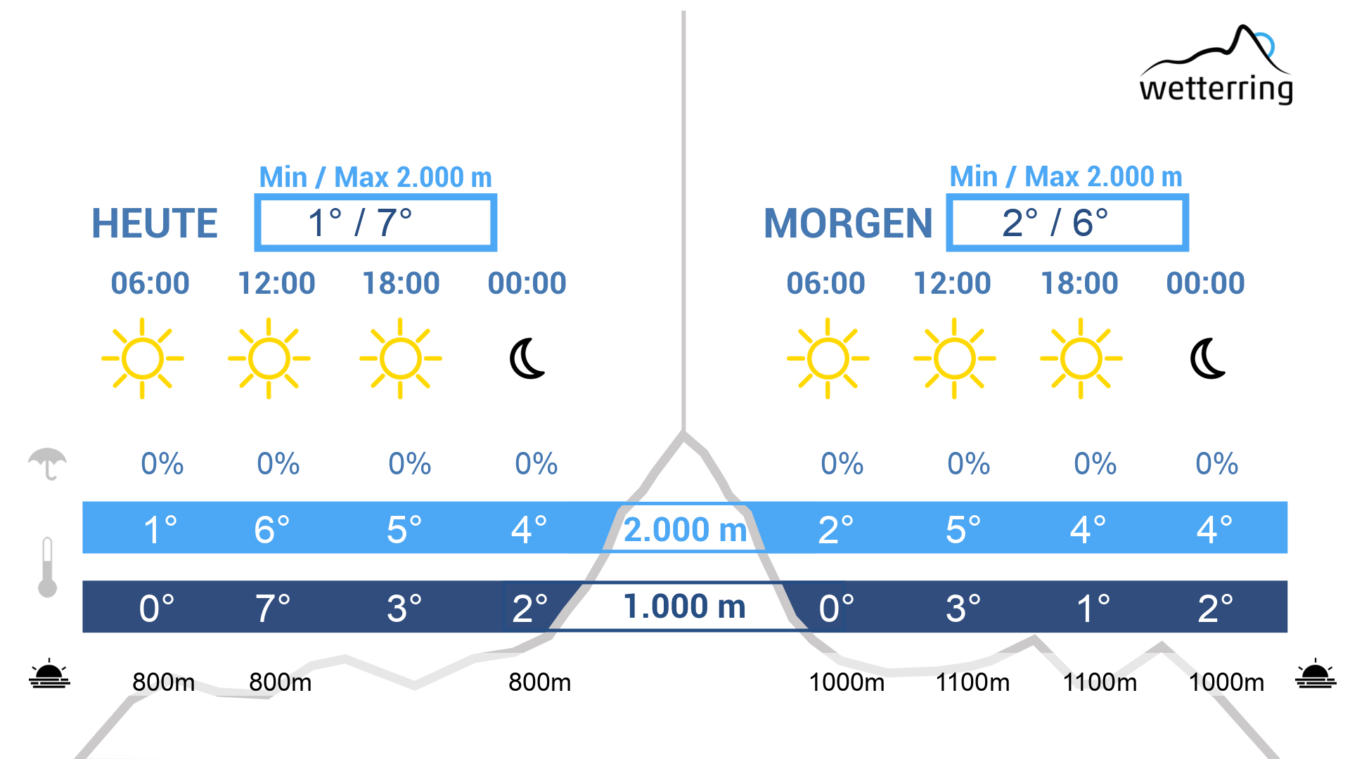 Morgen, unten grau, oben blau
