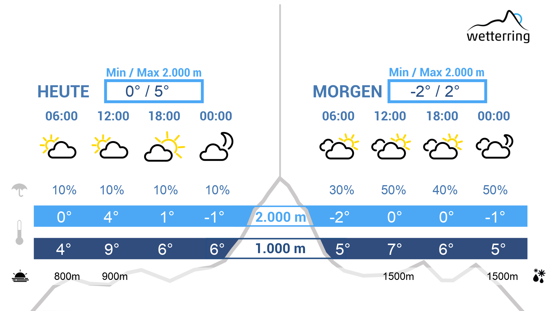 Am Dienstag ziehen von der Schweiz her teils dichtere Wolken durch und die Sonne gerät in den Hintergrund. Im Tagesverlauf kann es vor allem im Norden stellenweise etwas regnen, die Schneefallgrenze liegt um 1500 m.