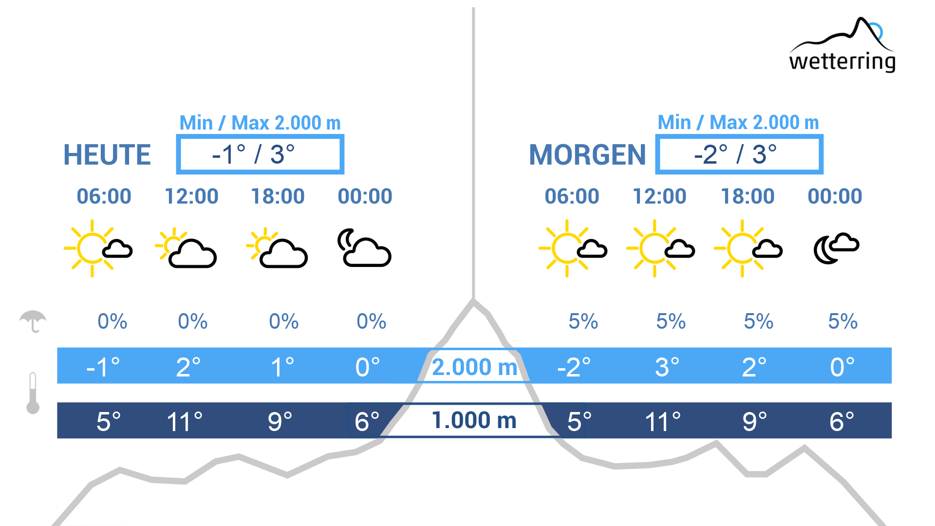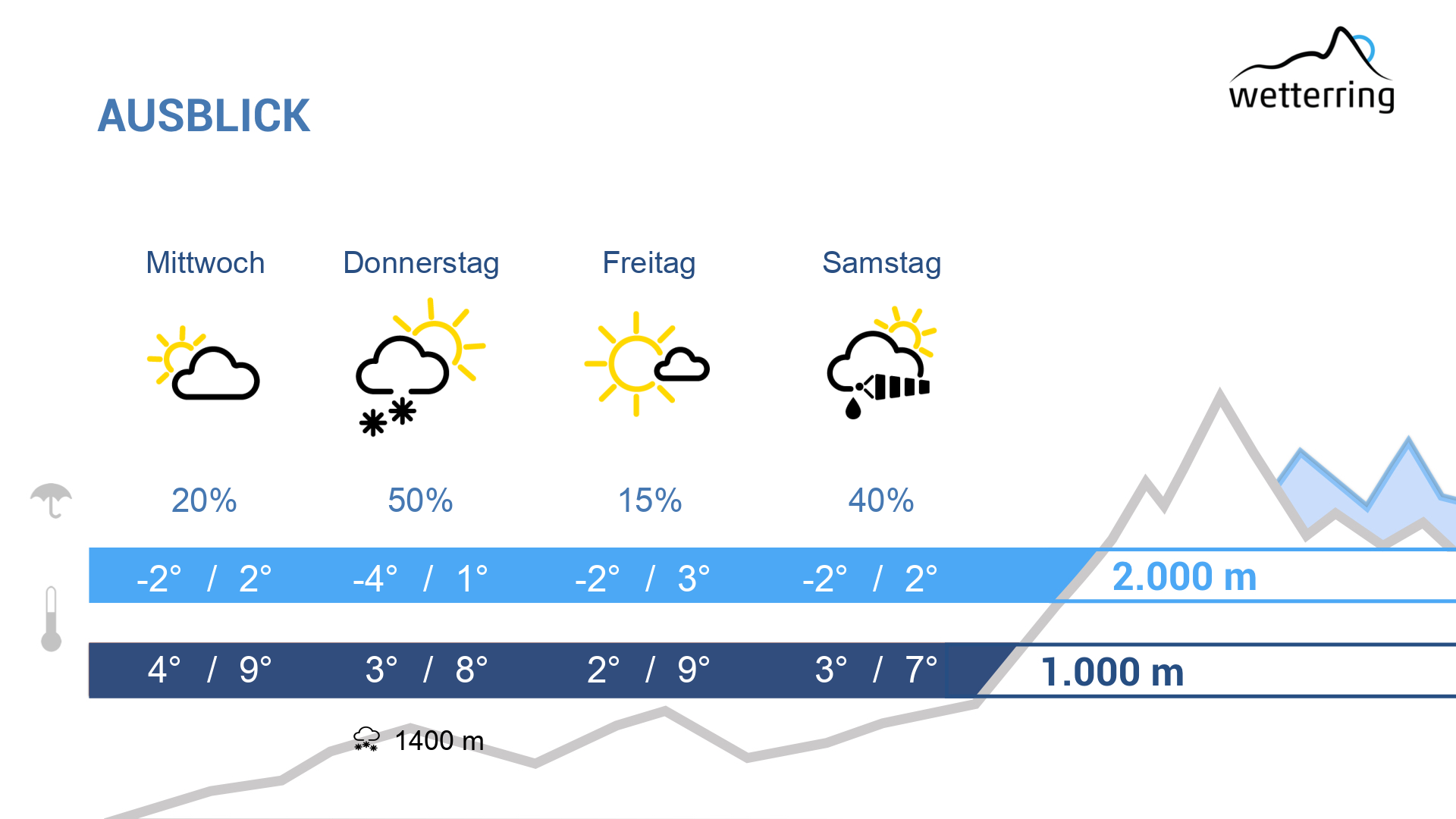 In der Nacht zum Donnerstag kann es leicht regnen, oberhalb von 1500 m fallen Flocken.