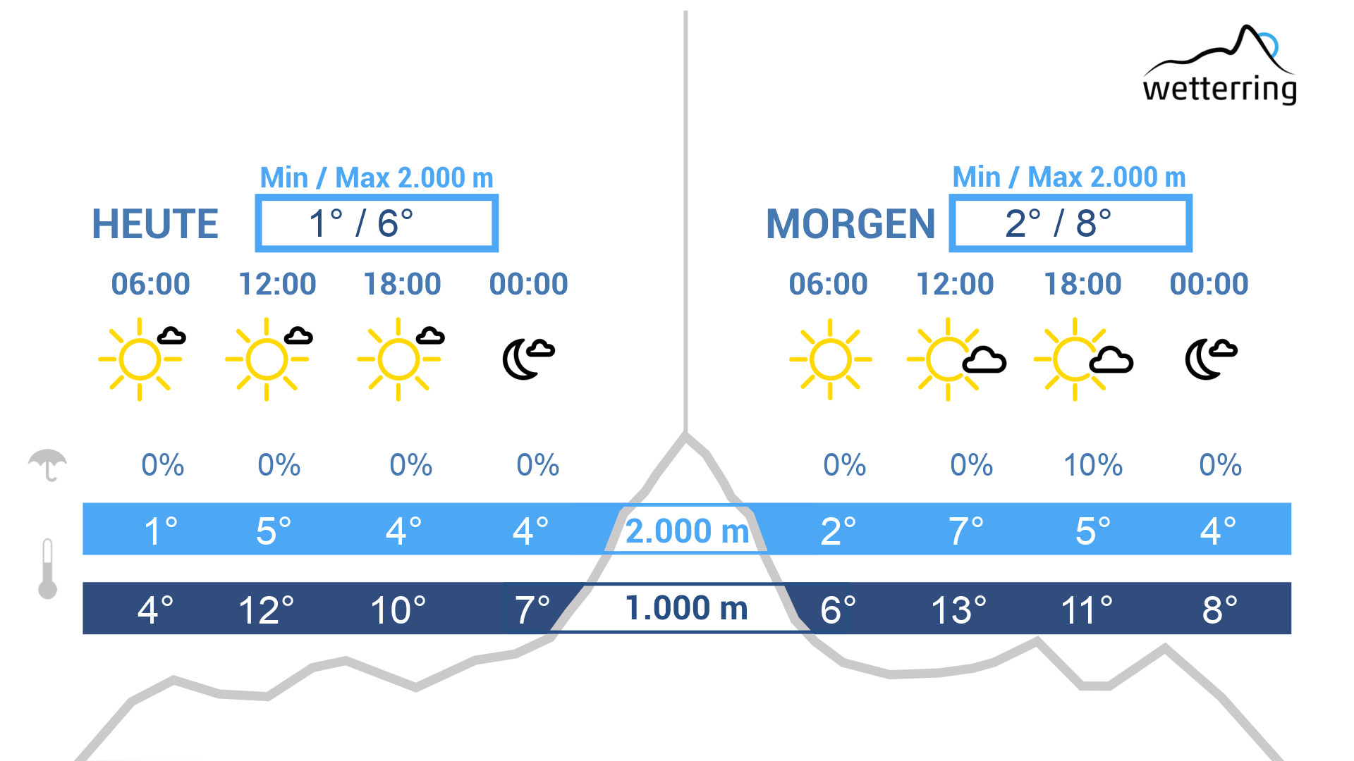 Winterlich! Letzte Schneeschauer klingen ab, zurück bleibt ein Mix aus vielen Wolken und etwas Sonne. In der Höhe wird es eiskalt mit -7 Grad auf 2.000 m.