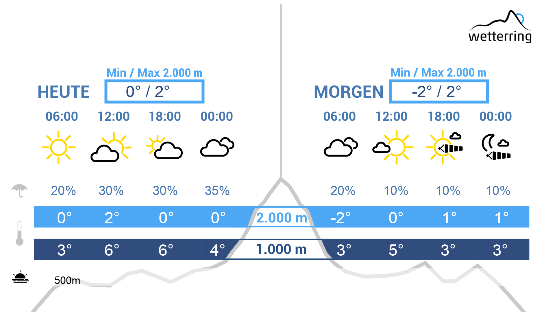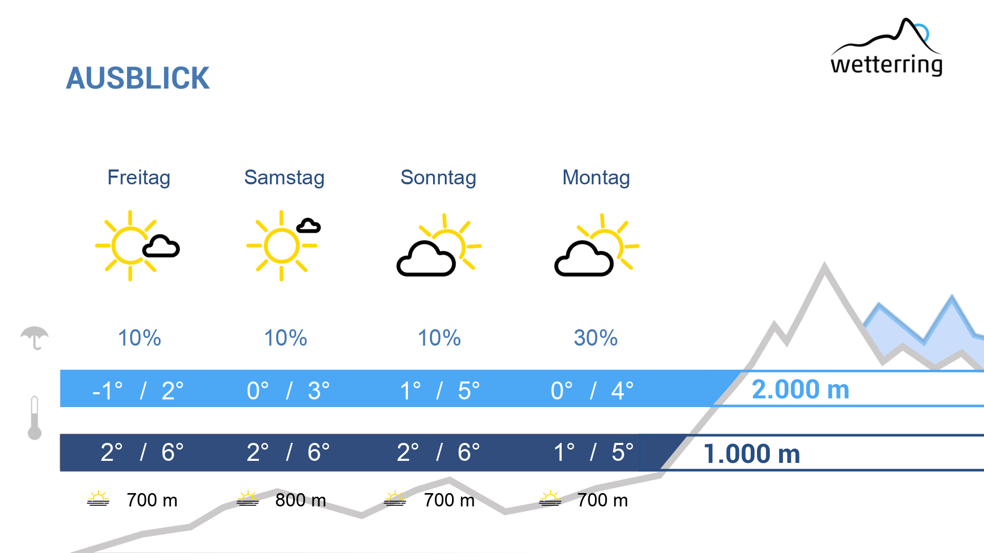 Morgen, untertags sonnig und aufkommender Föh