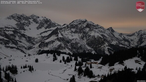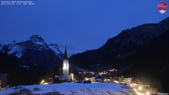 Im Rheintal und Walgau 2-5 cm Neuschnee, in den Bergregionen 5-15 cm. Am meisten fällt im Gebiet Sulzberg - Kleinwalsertal - Hinterwald - Arlberg mit 15-25 cm.