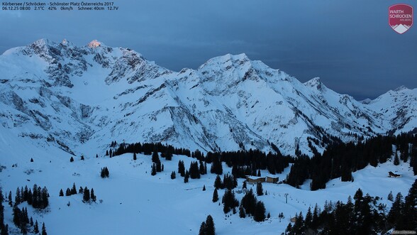 Am Vormittag werden die Wolkenfelder nun rasch dichter und es können erste lokale, unergiebige Regenschauer niedergehen. Oberhalb von ca. 1.600 m Schneeschauer, darunter in schattigen Gebieten zunächst weiter Glättegefahr durch überfrierende Nässe oder sogar lokaler Schneefall.