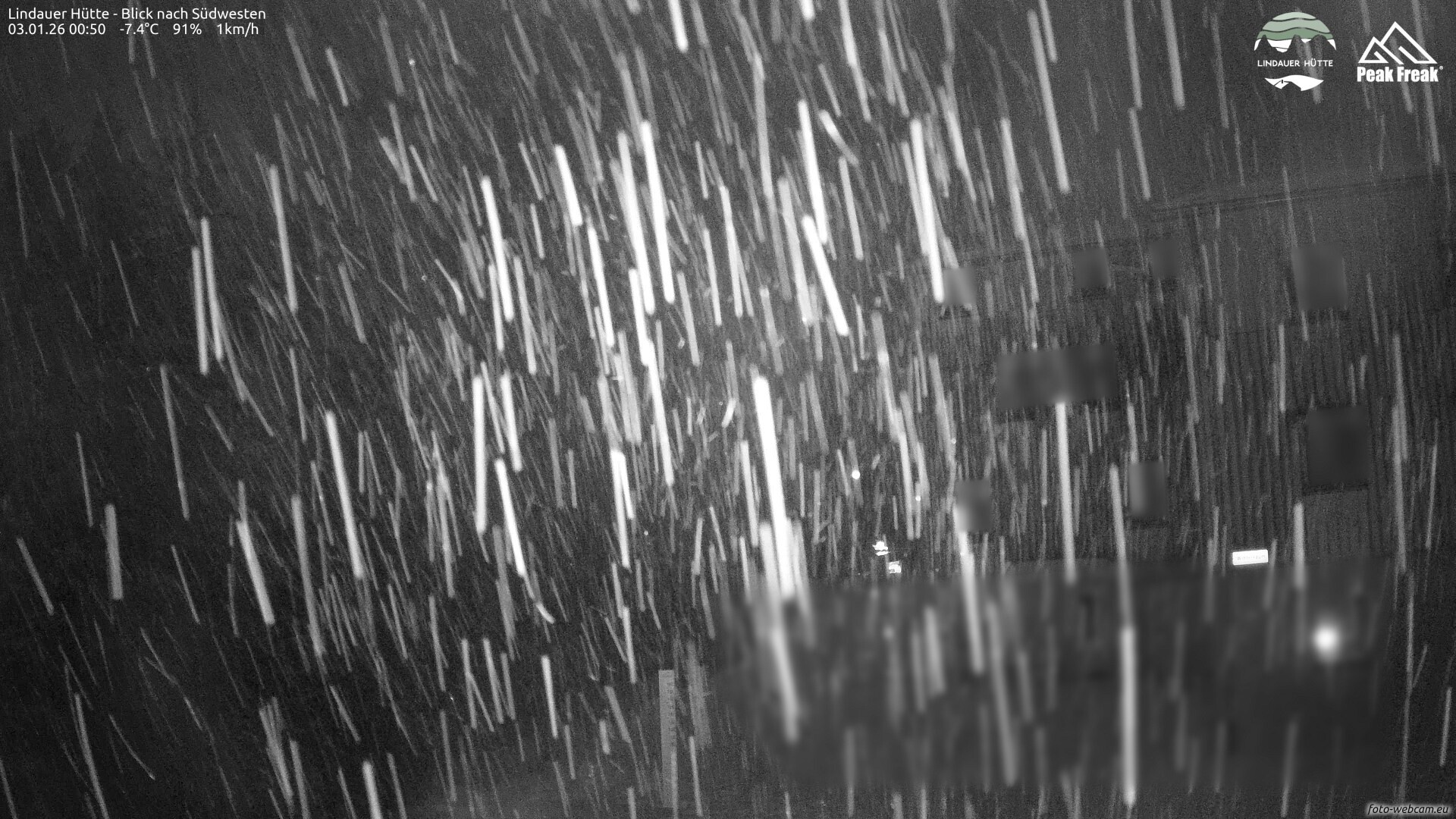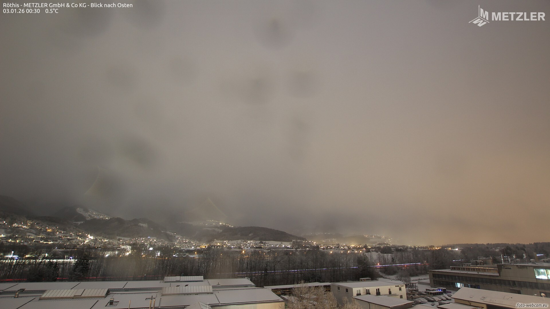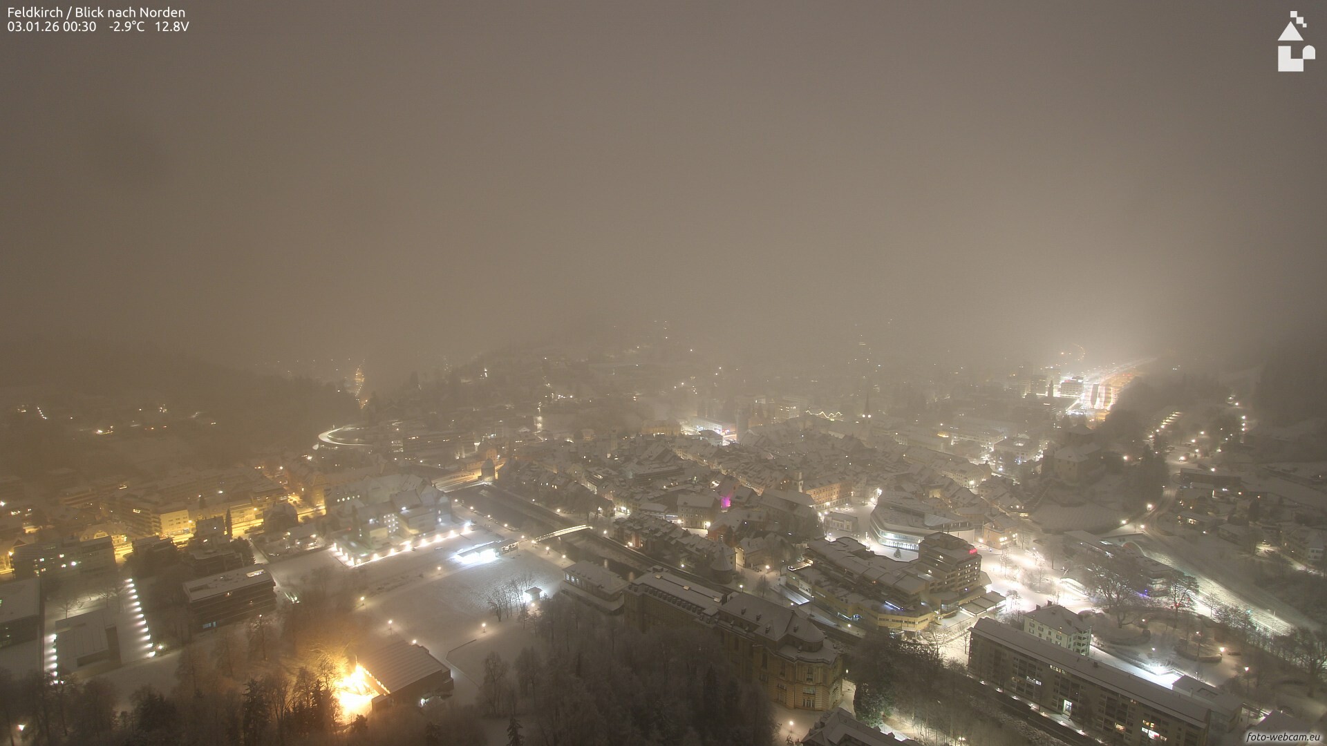 Über Nacht verbreitet aufkommender Schneefall.