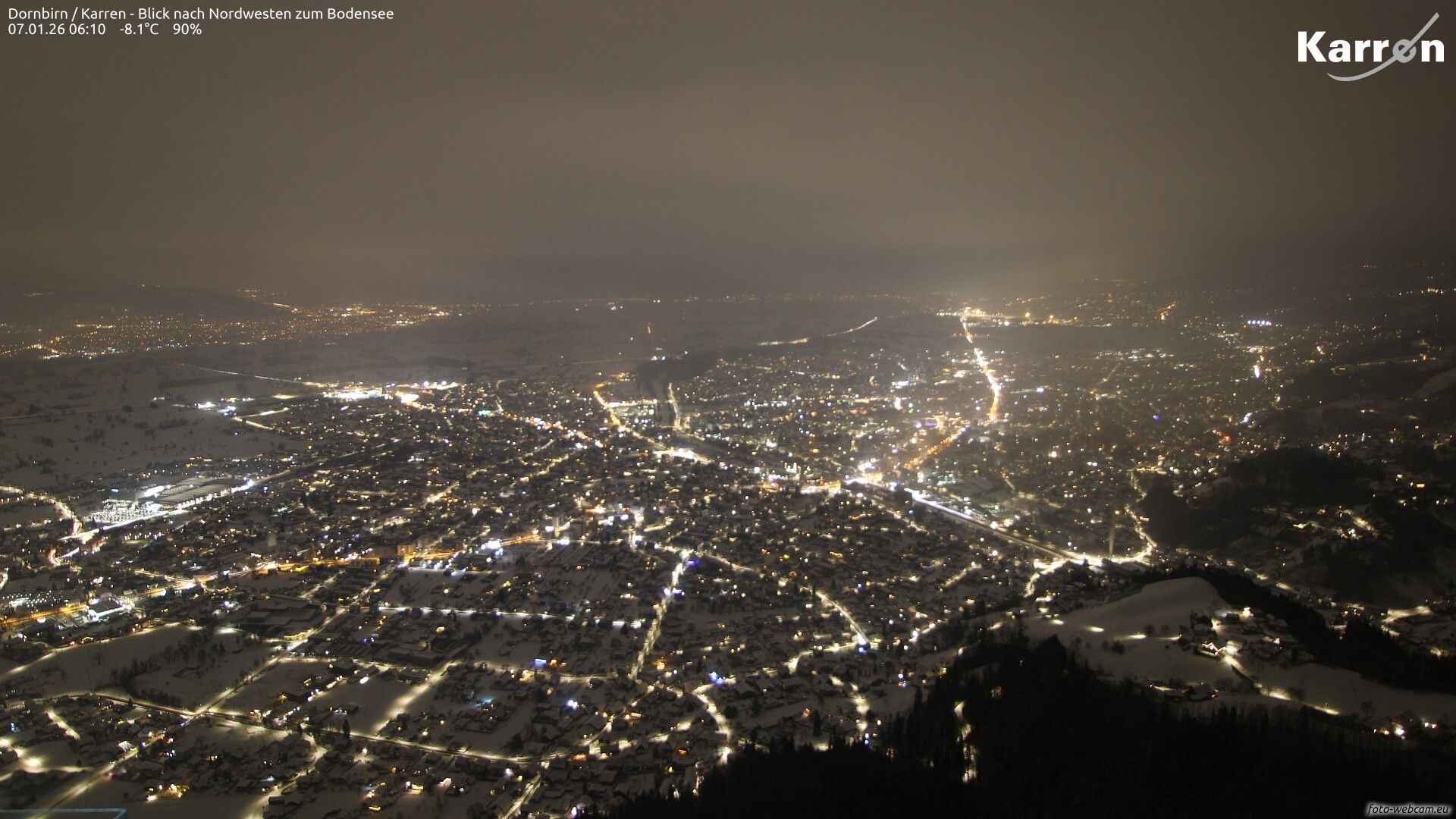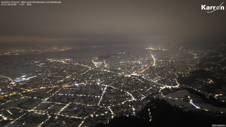 Ganz im Norden Vorarlbergs (Bodenseeraum, Laiblachtal und Pfänderstock) können in den Abend- und Nachtstunden ein paar Schneeflocken fallen. Die Mengen sind gering (0-2 cm)