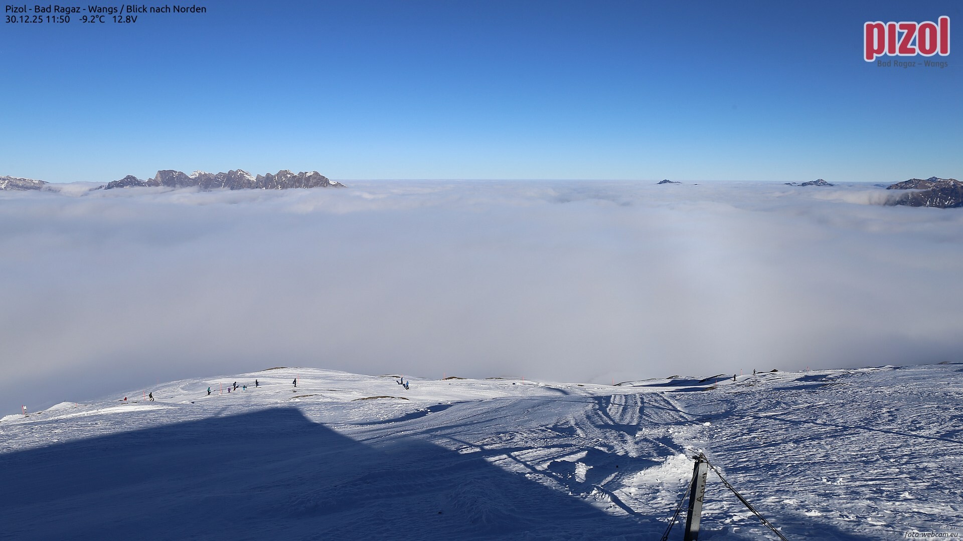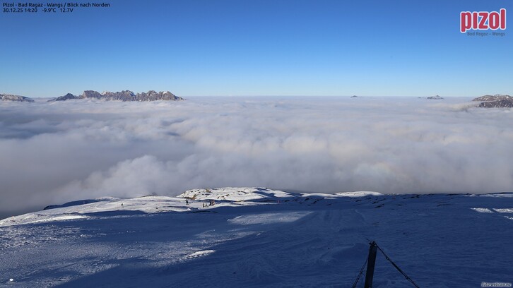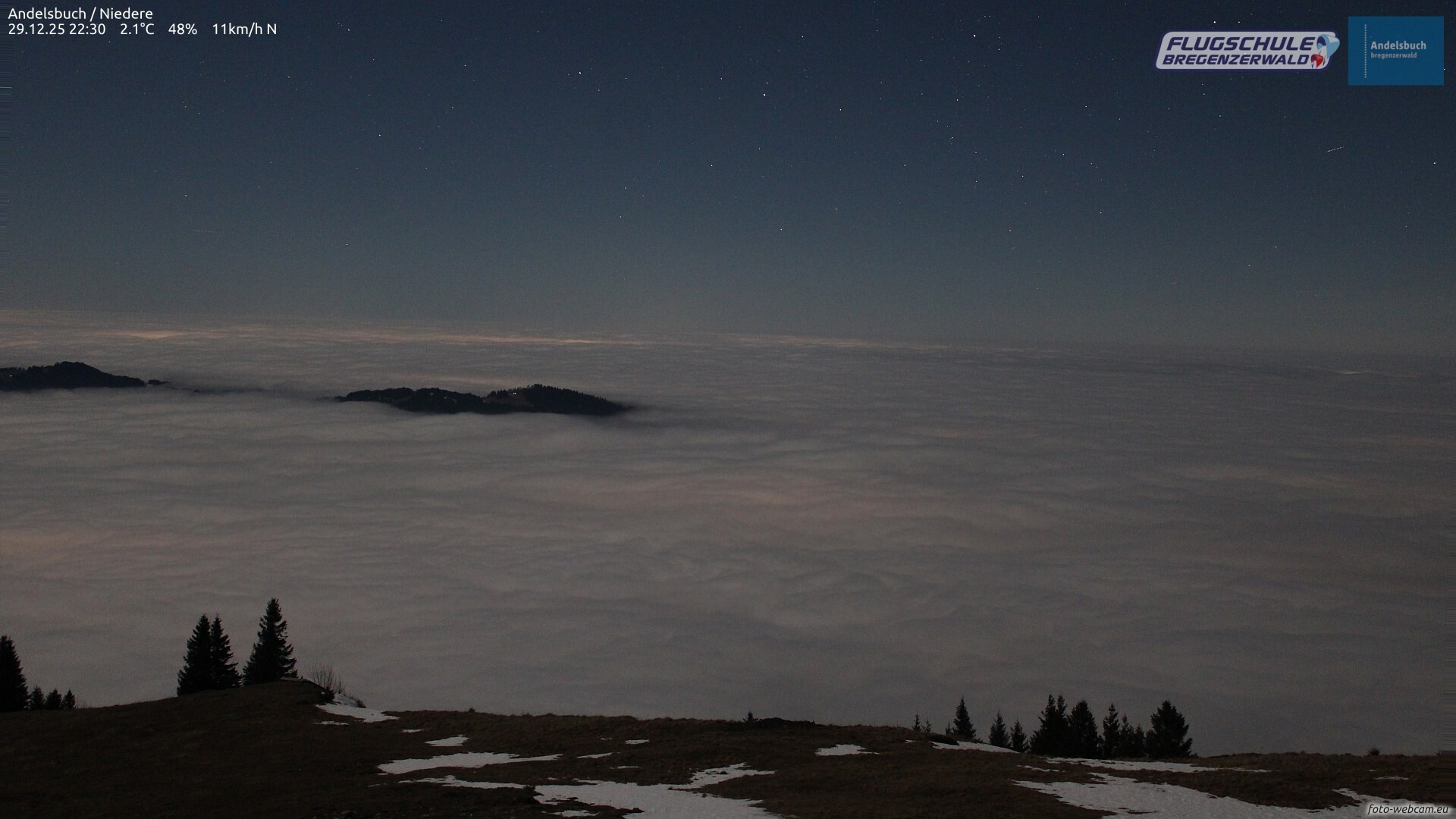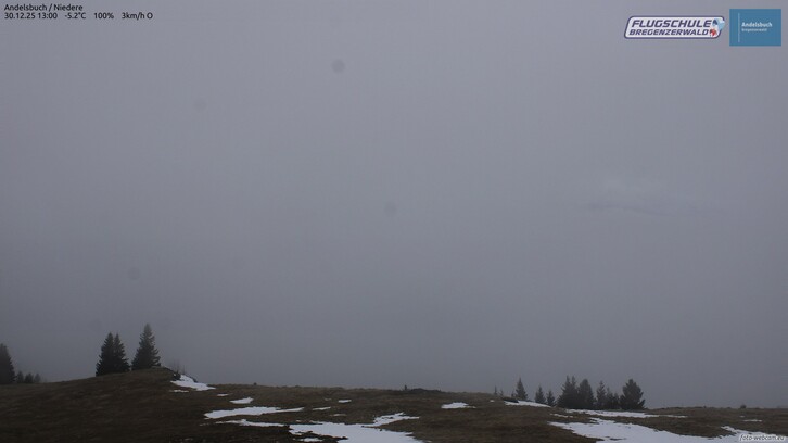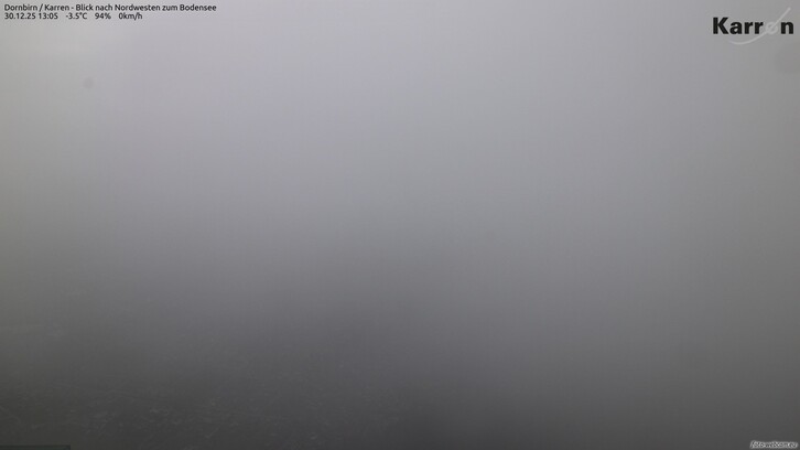 Im Bodenseeraum und im Vorderwald mäßiger Nordostwind (Bise). Untertags kann es vorwiegend im Norden hier und da leicht aus der Hochnebeldecke schneien.