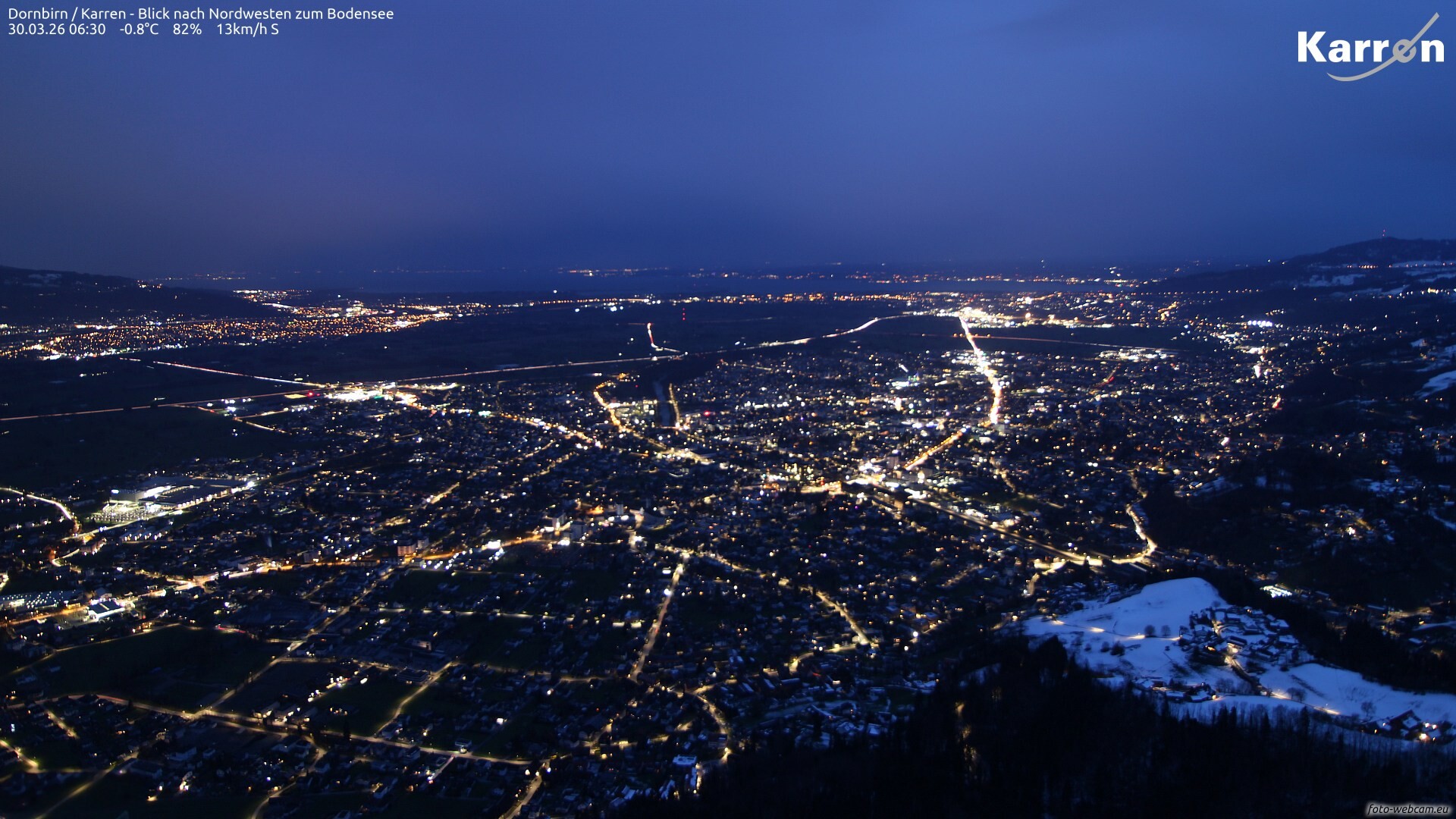 In den Bergen sind noch bis zum späteren Nachmittag / Abend letzte Schneeschauer zu erwarten, über den Tallagen ist es dagegen meist trocken. Nachts ist es im ganzen Ländle vorübergehend niederschlagsfrei.