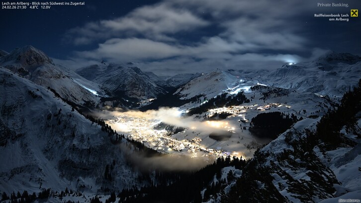 Bis zum Abend ziehen immer wieder Schauer mit Schwerpunkt in den Bergen vorüber. Die Schneefallgrenze liegt mit 1700-2000 Metern recht hoch, in windgeschützten Tälern kann sie lokal tiefer liegen. Darüber fallen vor allem am und um den Arlberg stellenweise grössere Neuschneemengen um 10-20cm. Der stürmische Wind im Gebirge lässt allmählich nach.