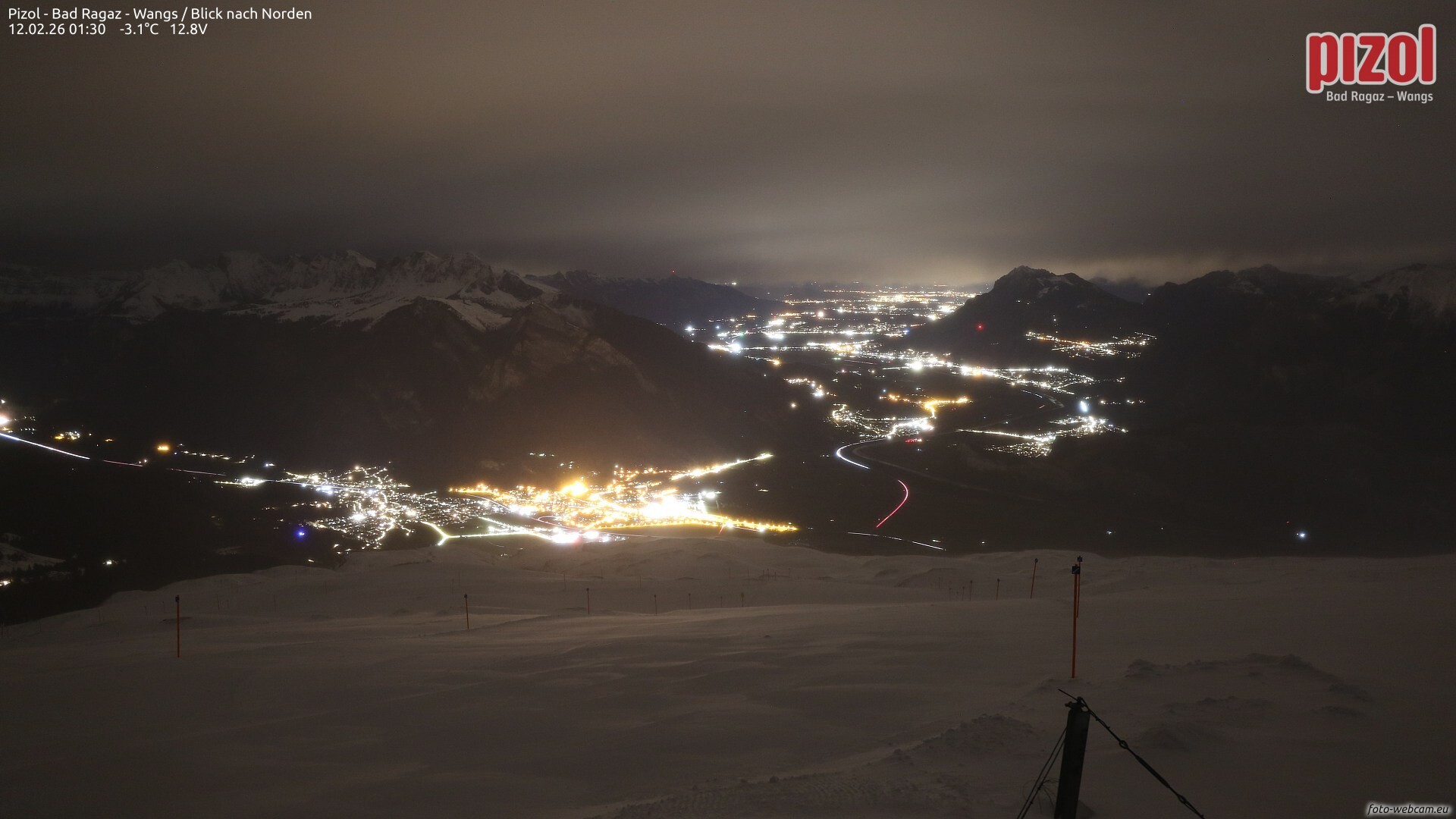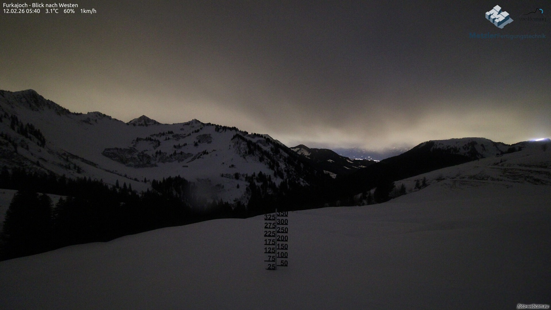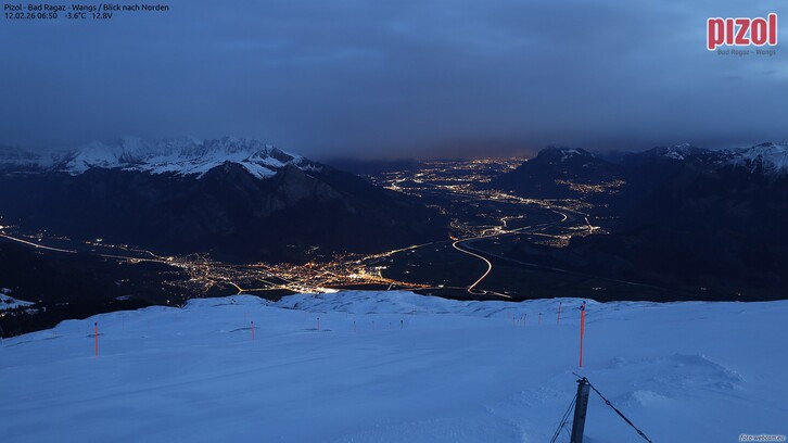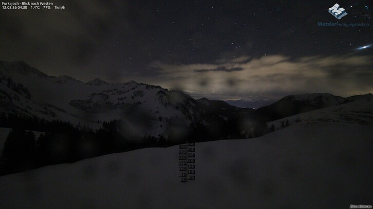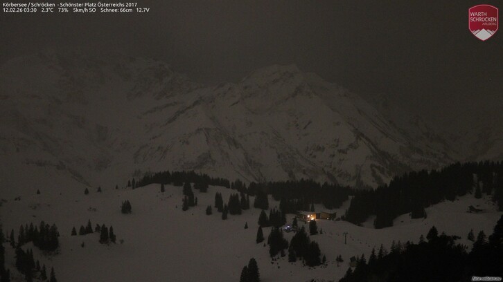 Es ziehen in der Nacht weitere Regenschauer durch, im Süden kommt zudem kurzzeitig Föhn auf. Die Schneefallgrenze bleibt bei ca. 1.500 m. Am Vormittag gibt es eine kurze Wetterpause mit nur kurzen Schauern und wenig Wind.