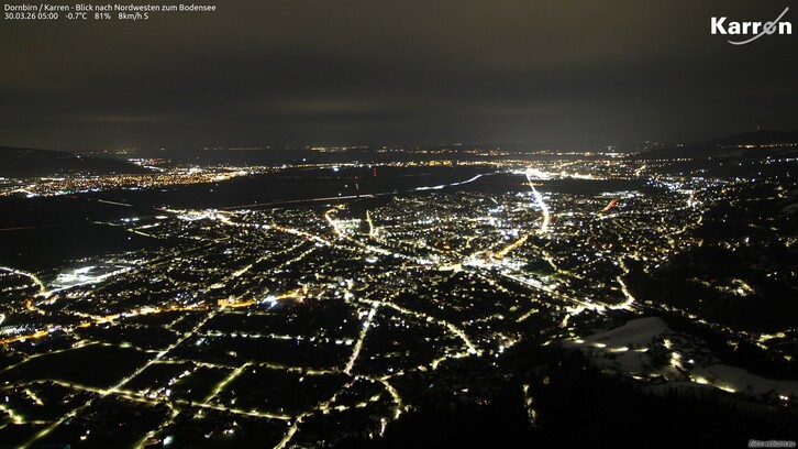 In den Bergen sind noch bis zum späteren Nachmittag / Abend letzte Schneeschauer zu erwarten, über den Tallagen ist es dagegen meist trocken. Nachts ist es im ganzen Ländle vorübergehend niederschlagsfrei.