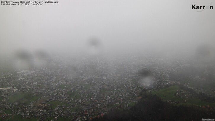 Im Verlauf des Tages (2. Tageshälfte) wird das Ländle von einer markanten Kaltfront erfasst, welche kräftige Niederschläge, stürmischen Wind und teils auch Gewitter bringt. Die Schneefallgrenze sinkt dabei bis Mitternacht / Donnerstag Früh von 1300m sukkzessiv gegen 500-400m.