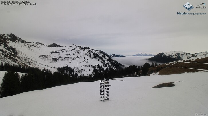 Sonntagfrüh stellenweise im Bodenseeraum noch nass. Ansonsten ist es es durch schwachen Föhneinfluss meist trocken.