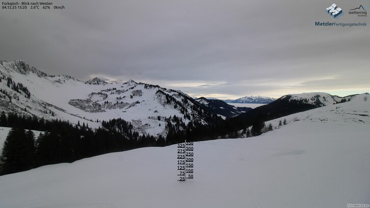 Im Verlauf des Abends setzt von Süden her (Montafon) Schneefall ein. Die Schneefallgrenze sinkt inneralpin bis in die Tallagen (600m). Im Walgau und Rheintal und Vorderen Bregenzerwald liegt sie hingegen bei 700-900m. In den Bergregionen fallen zwischen 3-8 cm Neuschnee bis Freitagmittag.