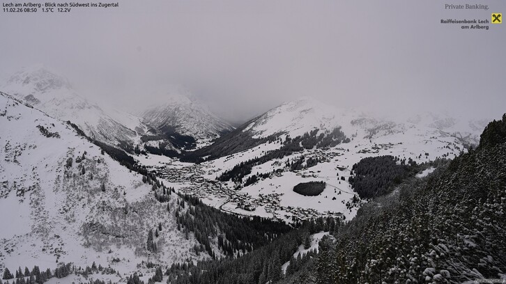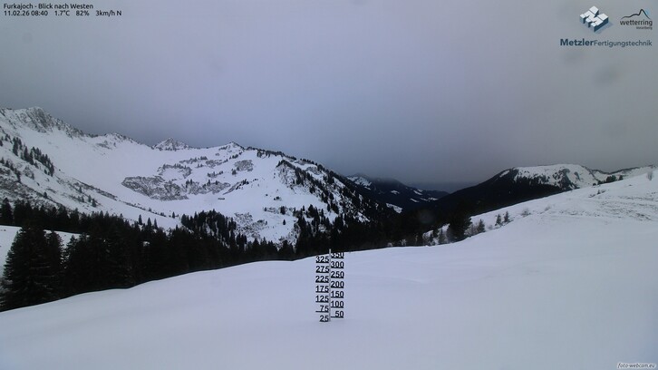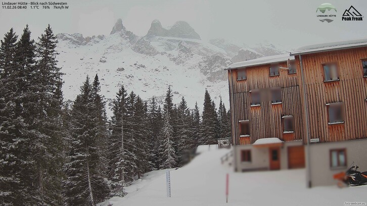 Auf den Bergen weht stürmischer Südwestwind mit Böen bis 80 km/h. In den Tälern ist es ruhiger aber auch hier kann der Wind einmal kräftig durchgreifen mit Böen um die 50 km/h.