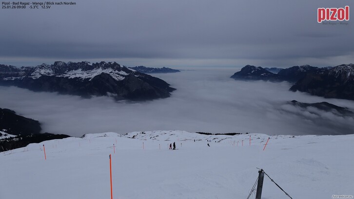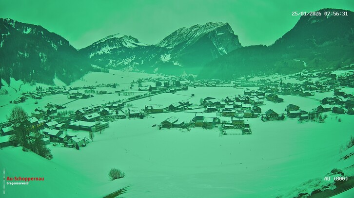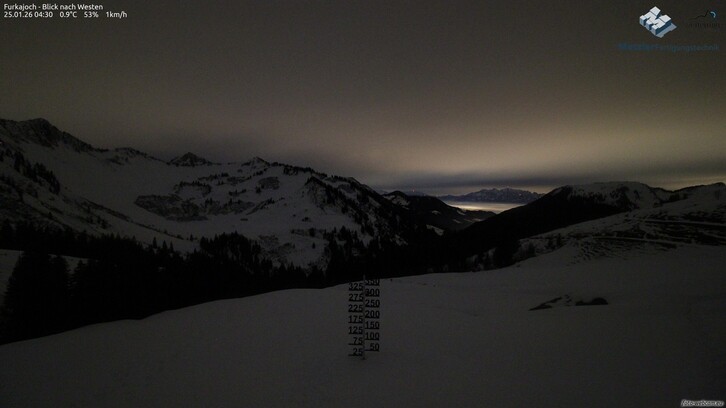 In den frühen Morgenstunden des Sonntages können von Süden her schwache Schauer auf die südlichen Teile des Ländles (Rätikon, Silvretta) übergreifen und für wenig Schneefall sorgen. Andernorts bleibt es am Vormittag meist trocken.