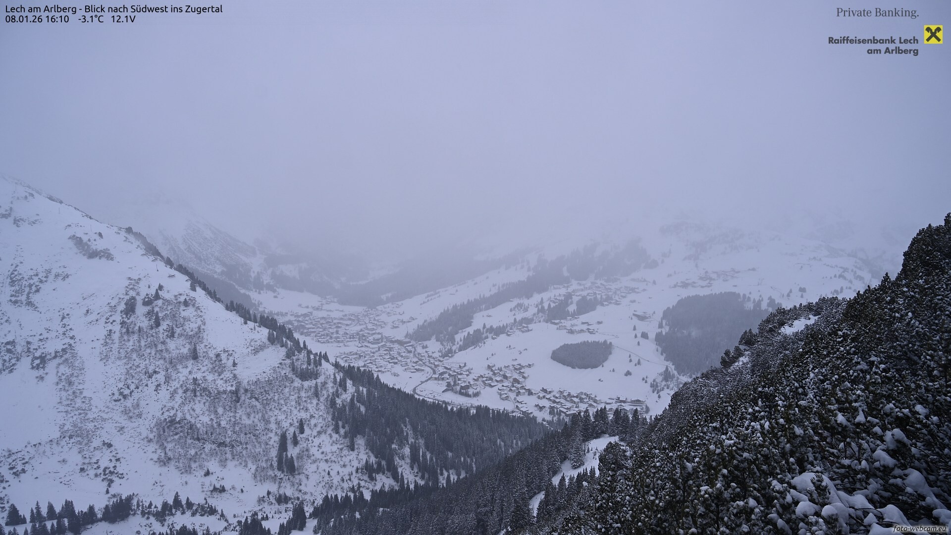Im Laufe des Abends und der Nacht kommt vor allem in den Bergen leichter Schneefall auf. In den Tallagen kann es aber auch unergiebig schneien.