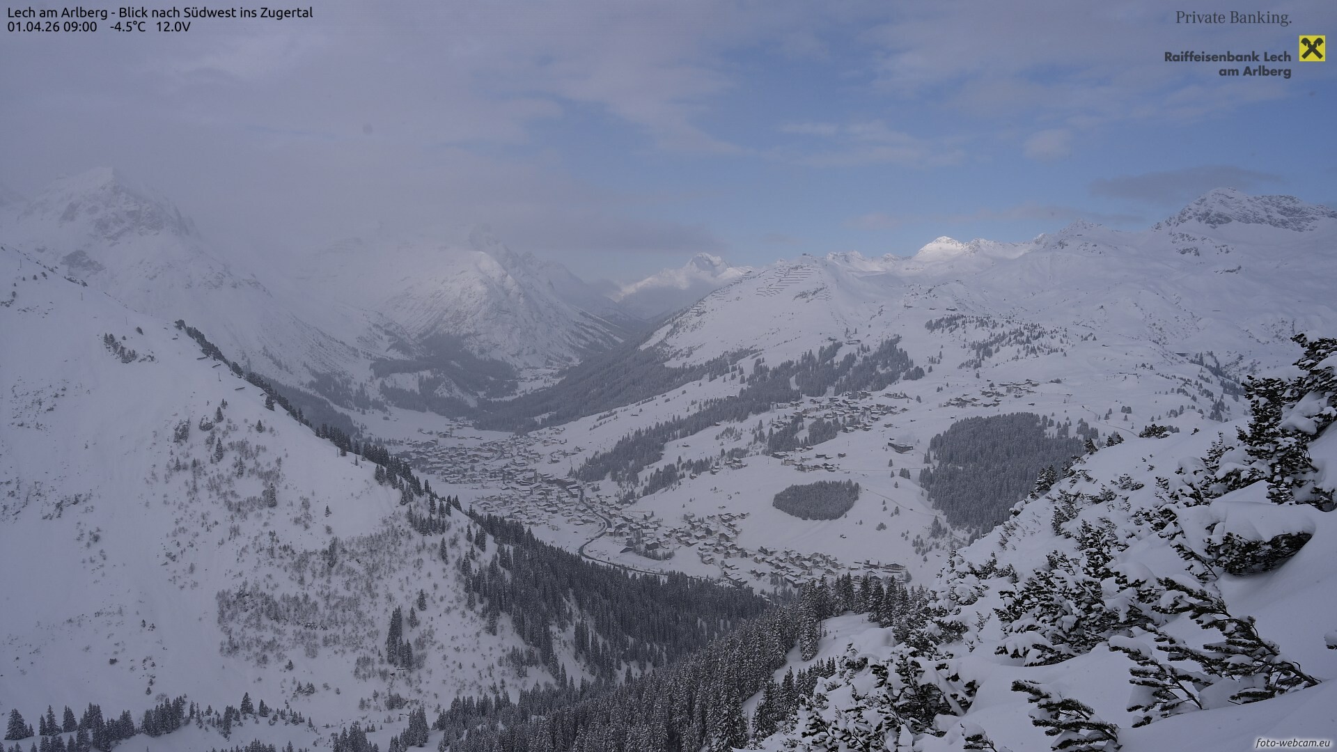 Bis Mittwochmittag ziehen bei einer Schneefallgrenze von 400-800 Metern von Norden her einige Schneeschauer durch, welche kurzzeitig auch kräftig sein können. In den Bergen können die Schauer auch länger anhaltend sein. In Summe fallen in den Bergen noch 3-5cm Schnee, lokal in Staugebieten noch bis zu 10cm.
