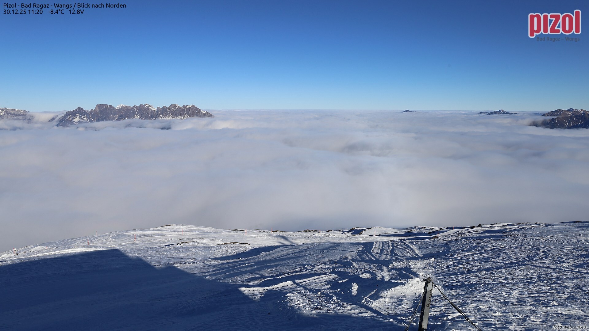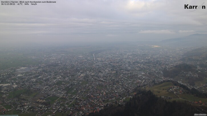 Im Bodenseeraum und im Vorderwald mäßiger Nordostwind (Bise). Am Vormittag kann es im Norden hier und da leicht aus der ansteigenden Hochnebeldecke schneien. Am Nachmittag und Abend dann auch in den südlicheren Regionen ab und zu leichtes Schneegrieseln.