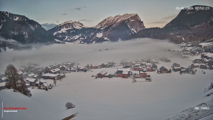 In den tiefsten Lagen, im Walgau, Rheintal und am Bodensee, kommen in der Nacht auf Donnerstag und am Donnerstagmorgen gebietsweise 1 bis 5 cm Neuschnee zusammen.