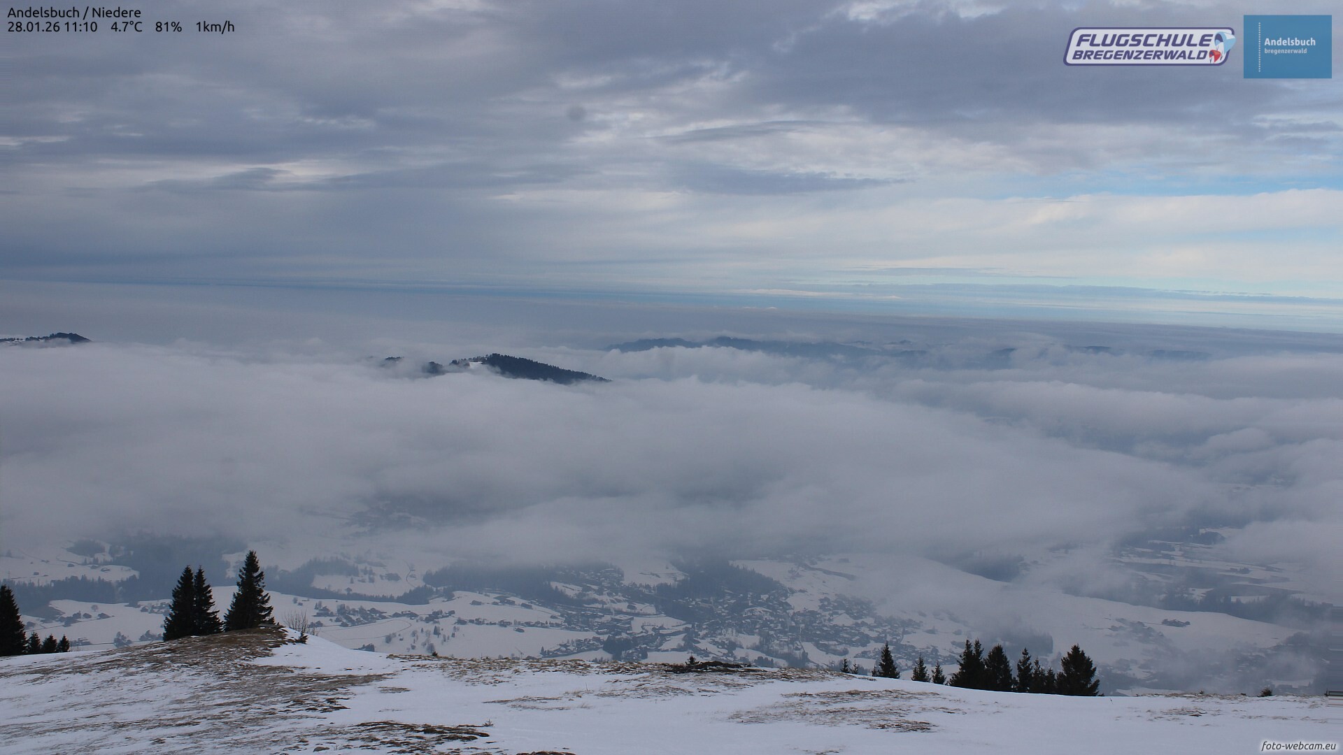 Der Donnerstag wird verbreitet winterlich und am Vormittag schneit es noch anhaltend, meist bis ganz runter. Am Nachmittag lässt der Schneefall langsam nach, gleichzeitig steigt die Schneefallgrenze wieder auf 500-600 m. Am Abend beruhigt sich das Wetter.