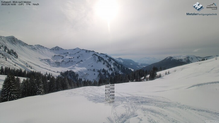 In Gebirge im Bereich vom Bregenzerwald-Kleinwalsertal-Arlberg-Firstgebiet sind 8-15cm Neuschnee möglich.