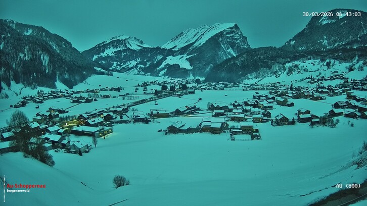 Morgen Montag setzen bereits im Laufe des Vormittages die nächsten Niederschläge ein. Diese halten mit Pausen bis Mittwochvormittag an, können jedoch vor allem in den Bergen und dort in den Staulagen (Bregenzerwald, Kleinwalsertal, ...) anhaltend ausfallen. Phasenweise können die Niederschläge auch kräftig sein. In Summe muss im Gebirge oberhalb von 1000 Metern von Montagmittag bis Mittwochmittag mit 30-50cm Neuschnee gerechnet werden, lokal kann es auch etwas mehr sein. Die Schneefallgrenze schwankt je nach Tageszeit und Niederschlagsintensität zwischen 400 und 800 Metern, womit es auch im Rheintal vorübergehend weiss werden kann.
