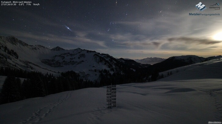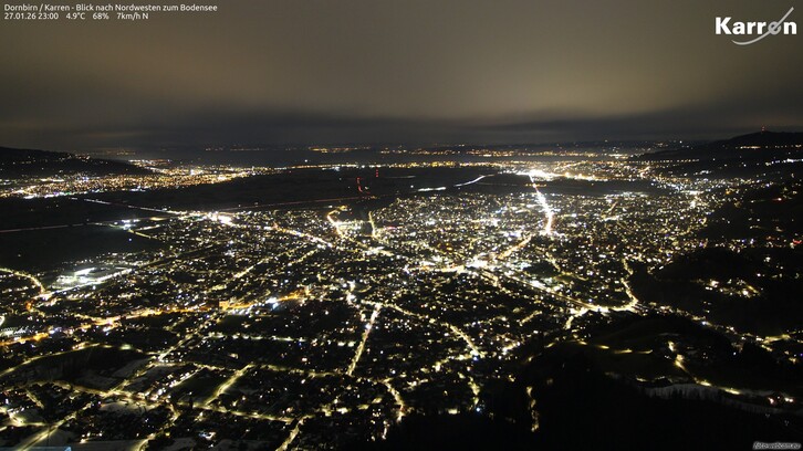 Am Abend und in der ersten Nachthälfte erreicht der Südföhn seinen Höhepunkt. Dabei muss man auf den Bergen und in den Föhntälern (wie z.B. im Brandnertal) mit Böen von 70 bis 100 km/h rechnen, lokal in exponierten Lagen auch mehr. Nach Norden hin ist der Föhn generell schwächer mit maximalen Böen um 70 km/h oder weniger.