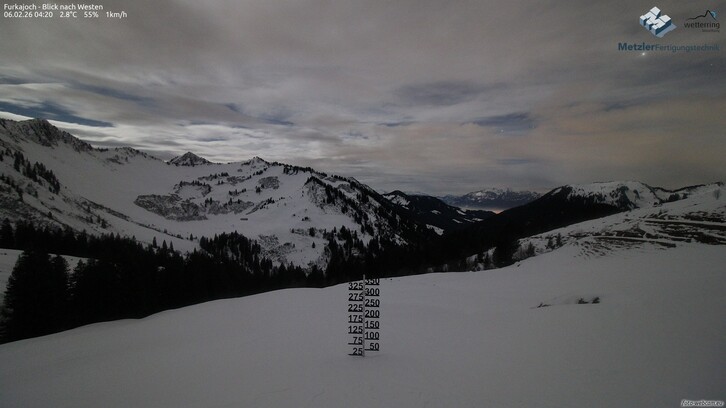 Vorwarnung: Am späten Vormittag bzw. gegen Mittag aufkommende Niederschläge. Die Schneefallgrenze liegt um 1100-1300 Meter. Ab dem Mittelgebirge fallen bis Samstagfrüh zwischen 2-8 cm Neuschnee. Am meisten davon im Gebiet Hochtannberg-Arlberg.