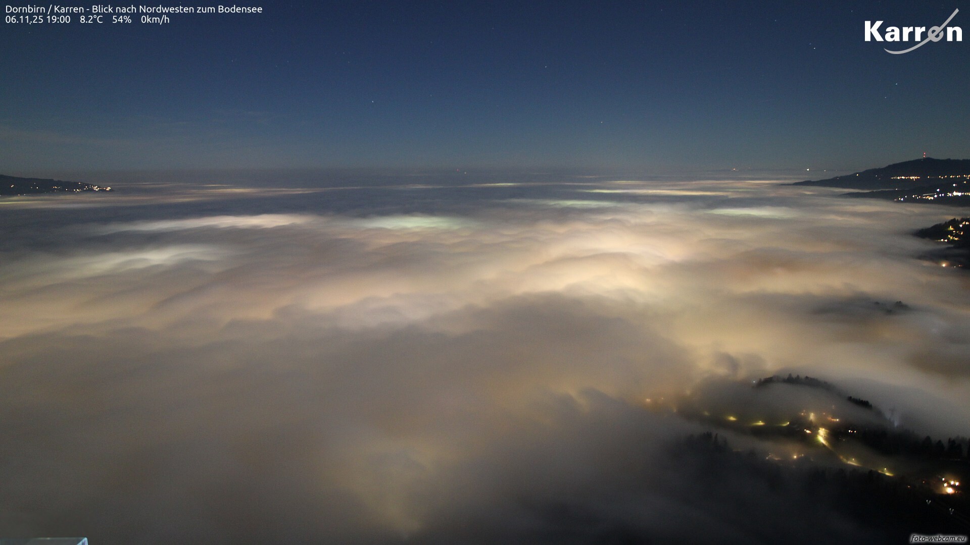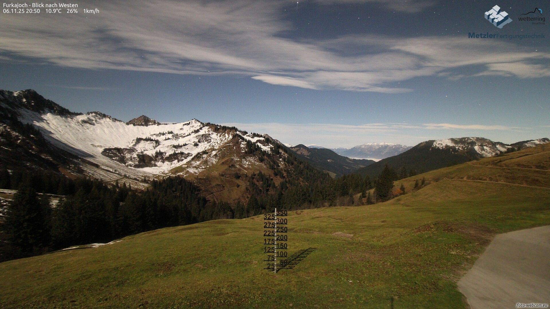 Am Donnerstag wird die Föhnströmung vorübergehend etwas stärker. Auf den Bergen und in den Föhnstrichen, speziell im Brandnertal, sind zeitweise Böen von 30 bis 50 km/h zu erwarten, lokal auch mehr.