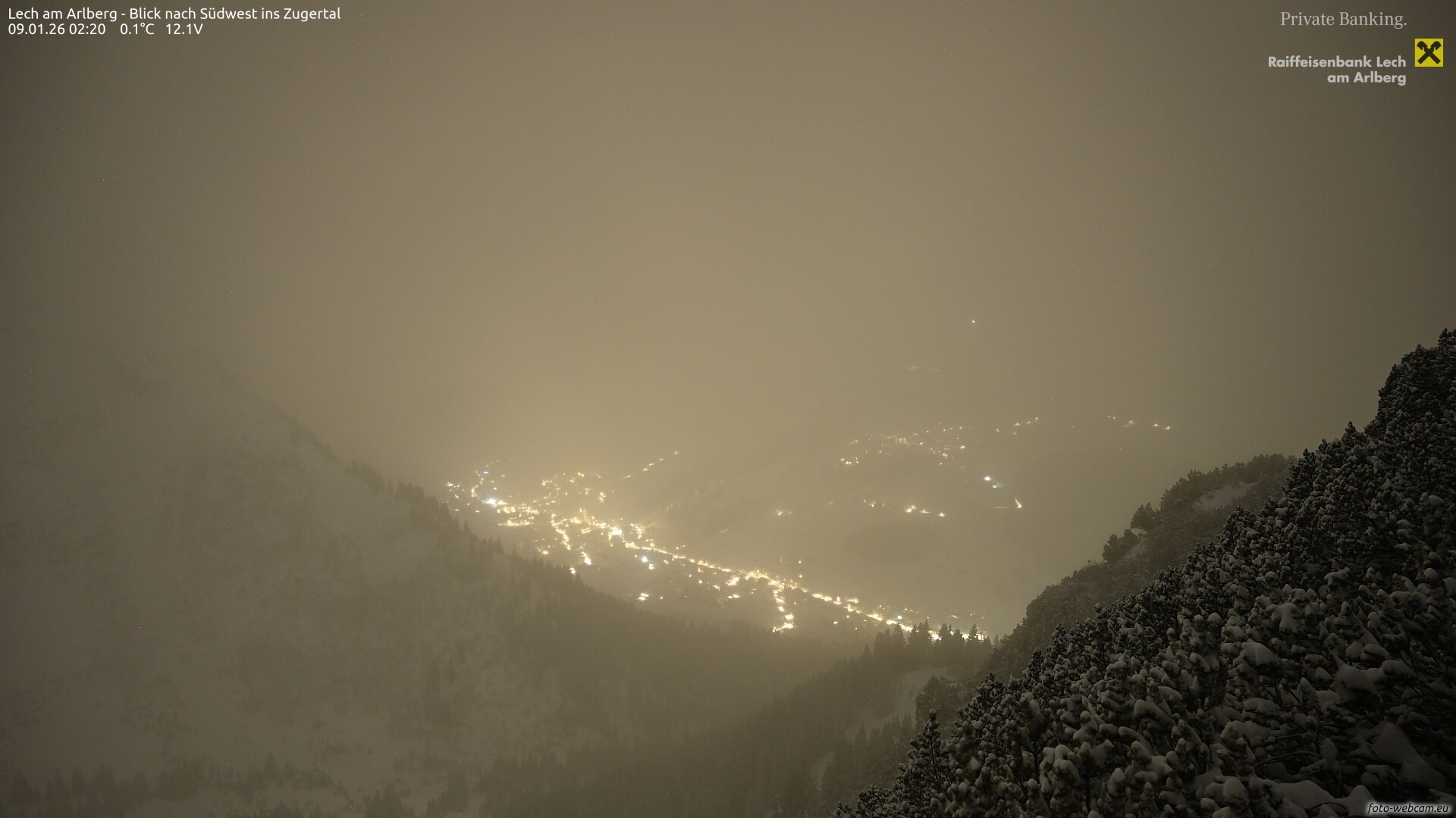 Im Laufe des Abends und der Nacht kommt vor allem in den Bergen leichter Schneefall auf. In den Tallagen kann es aber auch unergiebig schneien.